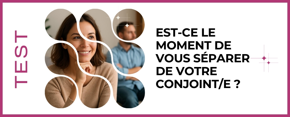 Découvrez si le moment est venu de prendre une décision importante pour votre couple grâce à ce test simple et intuitif. En quelques minutes vous évaluerez votre relation, vos besoins et l'avenir possible avec votre conjoint(e). Ce quiz vous guide avec bienveillance et clarté pour mieux comprendre vos émotions, repérer les signes et savoir si une séparation pourrait ouvrir la voie à un renouveau. Prenez un instant pour vous maintenant.