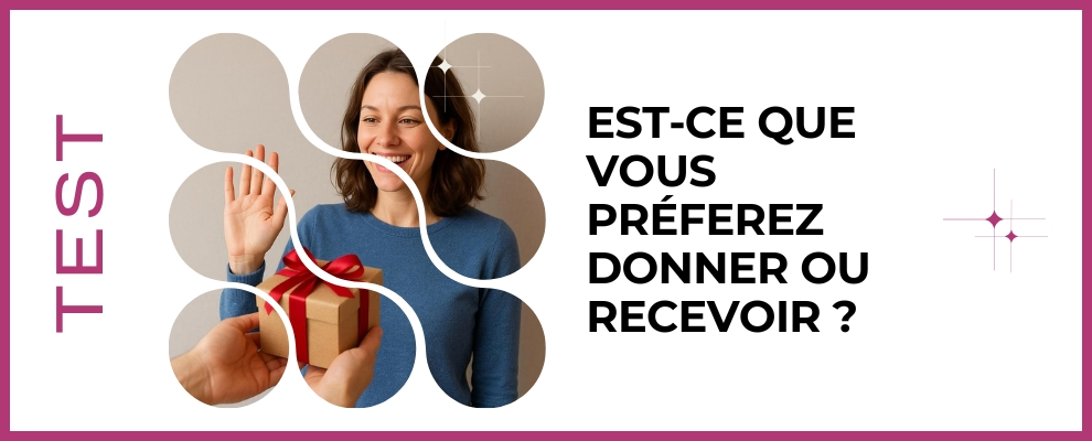 Vous donnez sans compter ou vous avez du mal à accepter l'aide des autres ? Ce test ludique et bienveillant vous révèle si vous préférez donner ou recevoir, et pourquoi. En quelques minutes, découvrez votre profil émotionnel, vos automatismes et des conseils personnalisés pour équilibrer vos échanges. Lancez-vous et apprenez à harmoniser vos relations pour plus de sérénité et d'énergie positive au quotidien, dès aujourd'hui, avec douceur et confiance authentique.