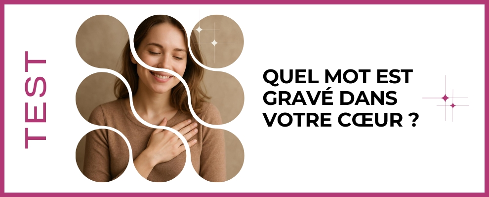 Prêt(e) à découvrir le mot qui résonne au plus profond de votre coeur et guide vos choix amoureux ? Ce test ludique et intuitif explore vos émotions, vos valeurs et vos désirs pour révéler le mot gravé dans votre coeur. En quelques questions simples, laissez parler votre instinct, surprenez-vous et repartez avec un message clair pour mieux vous connaitre et vivre vos relations avec plus d'authenticité aujourd'hui.