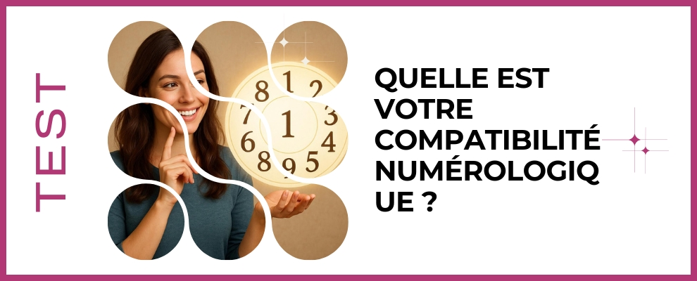 Testez votre compatibilité numérologique et découvrez si vos nombres vibrent en harmonie avec ceux de votre partenaire, ami ou collègue. Ce test rapide révèle vos affinités, points d'alerte et pistes d'évolution grâce aux chiffres clés de votre date de naissance et de votre prénom. Prêt à percer le mystère des nombres et à mieux comprendre vos relations intimes et professionnelles ? Obtenez des conseils personnalisés et transformez vos liens dès maintenant.