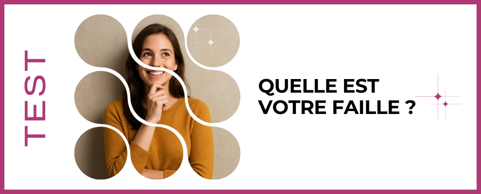Osez découvrir votre faille pour mieux vous connaître et agir. Ce test simple et bienveillant vous guide pas à pas pour repérer la blessure ou l'automatisme qui freine votre épanouissement. En quelques minutes vous obtiendrez une lecture claire, des pistes concrètes et des conseils pour transformer cette vulnérabilité en force. Prêt(e) à explorer et à changer votre regard sur vous-même avec douceur, curiosité et engagement vers un mieux-être concret