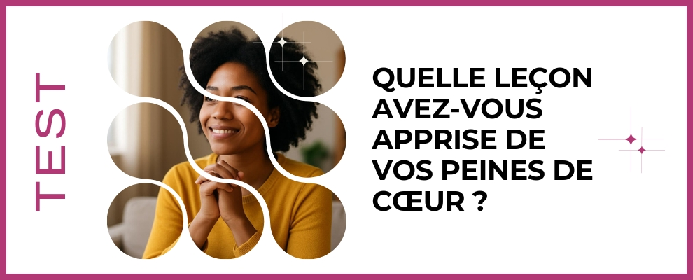 Prêt à découvrir ce que vos peines de cœur vous ont enseigné réellement ? Ce test malin vous guide pas à pas pour identifier les leçons cachées derrière la douleur, repérer vos forces et obtenir des conseils concrets pour avancer. En quelques minutes, gagnez en clarté émotionnelle et transformez votre vécu amoureux en tremplin vers une nouvelle version de vous-même, plus confiant(e), aligné(e) et prêt(e) à aimer encore aujourd'hui simplement.