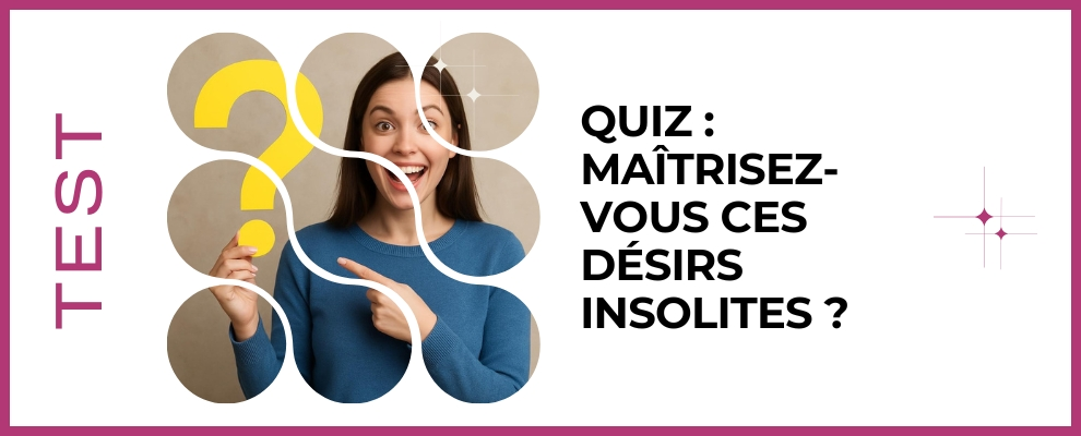 Explorez vos désirs insolites avec bienveillance grâce à ce quiz simple et ludique. En quelques questions claires et rapides vous découvrirez des penchants surprenants, leurs origines possibles et des pistes pour les comprendre sans culpabiliser. Ce test vous aide à mieux vous connaître, à oser l'honnêteté envers vous-même et à décider ce qui vous convient vraiment. Lancez-vous maintenant pour apprendre, sourire et avancer en toute confiance et découvrez votre vérité.