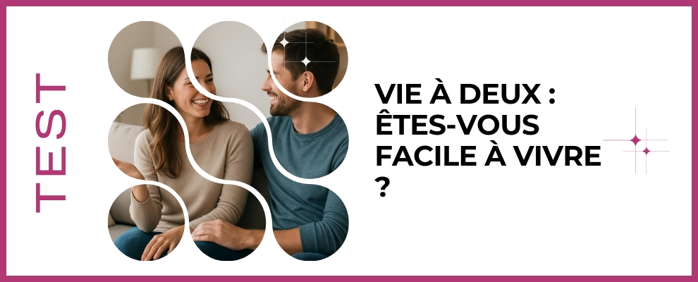 Envie de savoir si vous êtes vraiment facile à vivre en couple ou si vous confondez gentillesse et renoncement? Faites ce test rapide et ludique pour découvrir votre profil relationnel, repérer vos points forts et obtenir des conseils concrets pour améliorer la vie à deux. En quelques minutes, vous aurez des clés pour équilibrer souplesse et authenticité, et pour vivre ensemble plus sereinement. Prêt à mieux vous connaître et aimer ?